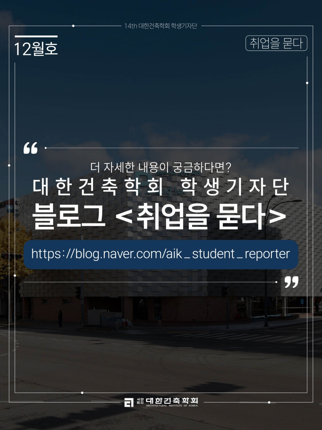 📌 Official blog of the Architectural Institute of Korea Student Reporter Group: https://blog.naver.com/aik_student_reporter📌